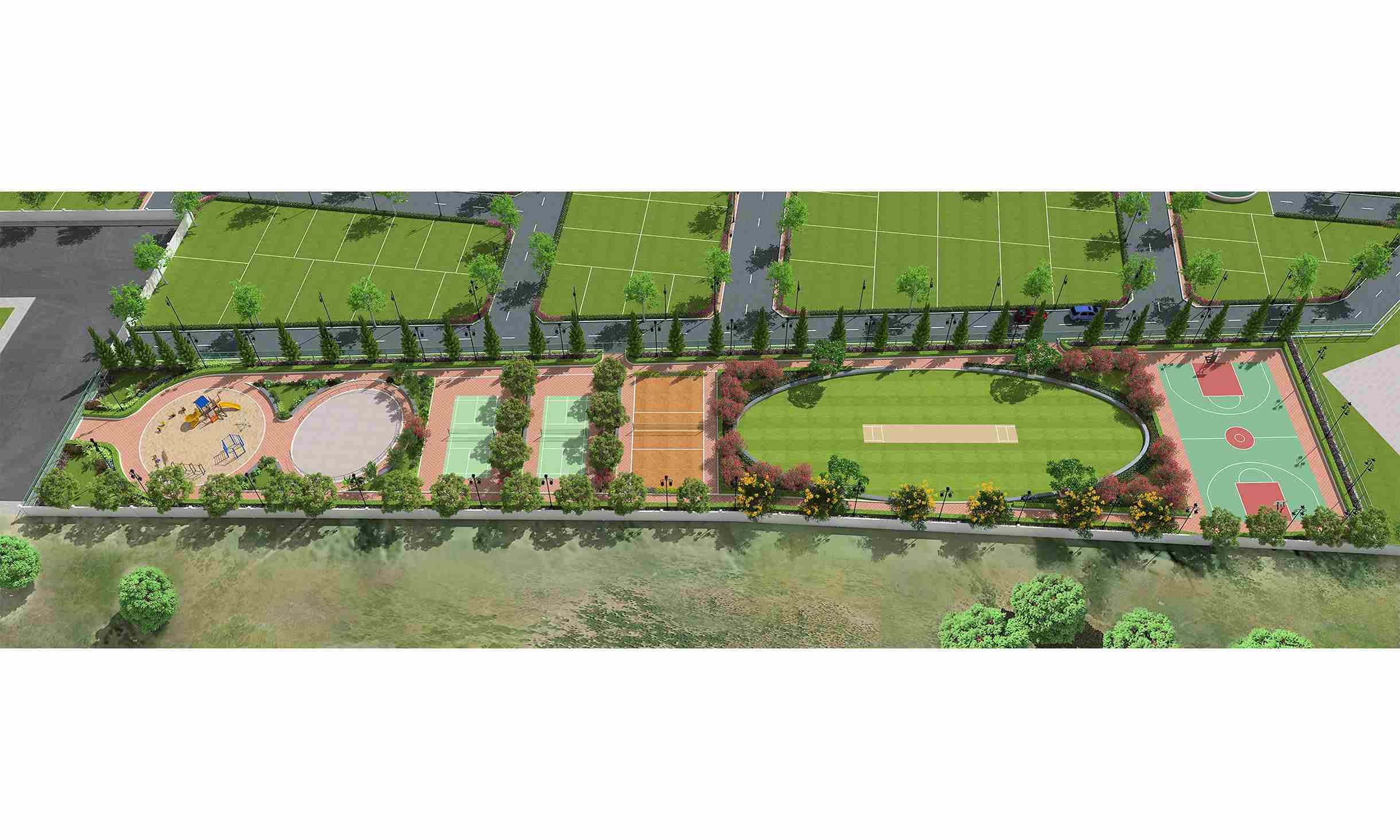 • Lawn Area with seaters for Senior Citizen